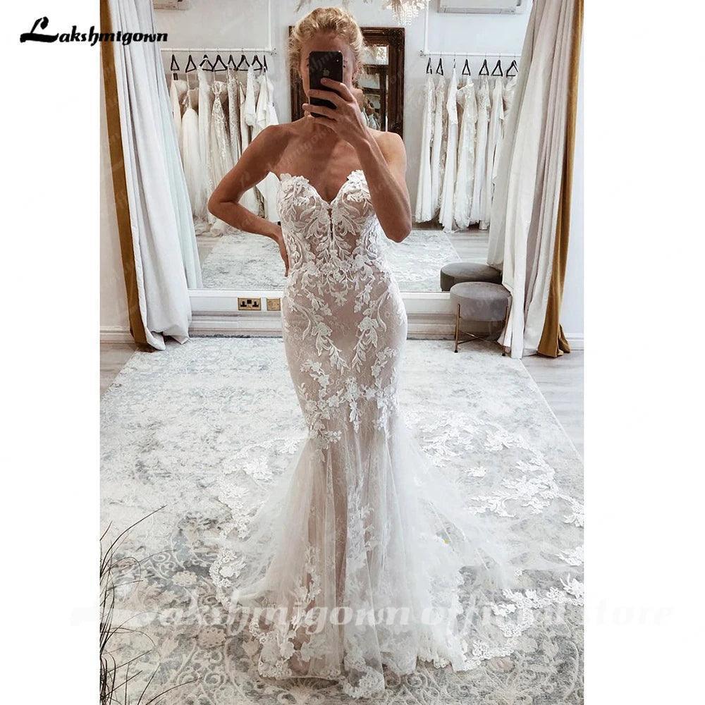 NumberSea Lace Boho Wedding Dress 2025 Off The Shoulder Sweetheart Appliques Cut Out Long Train Vestido de novia corte sirena