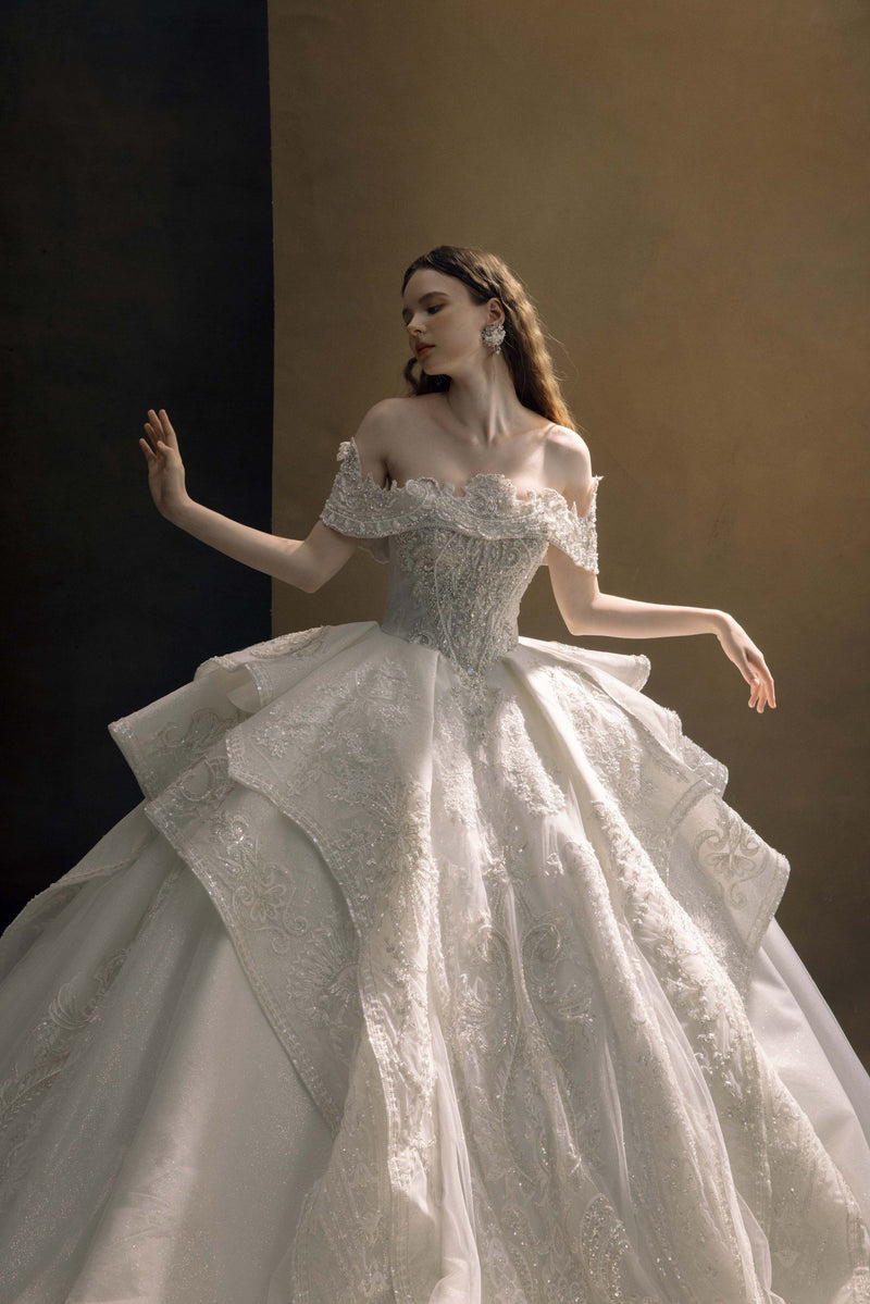 Vestidos de noiva estilo princesa, sem alças, em tule, com aplicações em renda, modelo NumberSea MW1016