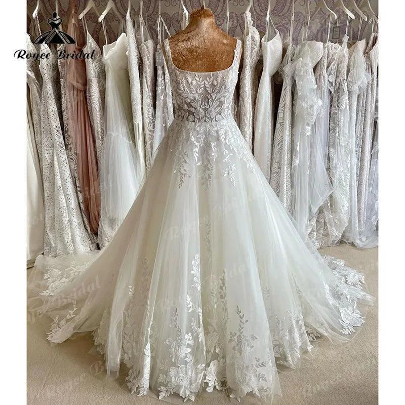 NumberSea 2025 Vestidos de Noiva de Luxo com Renda Vestidos de Noiva Elegantes Decote Quadrado Princesa Mulheres Boho Vestidos de Noiva Cauda Média